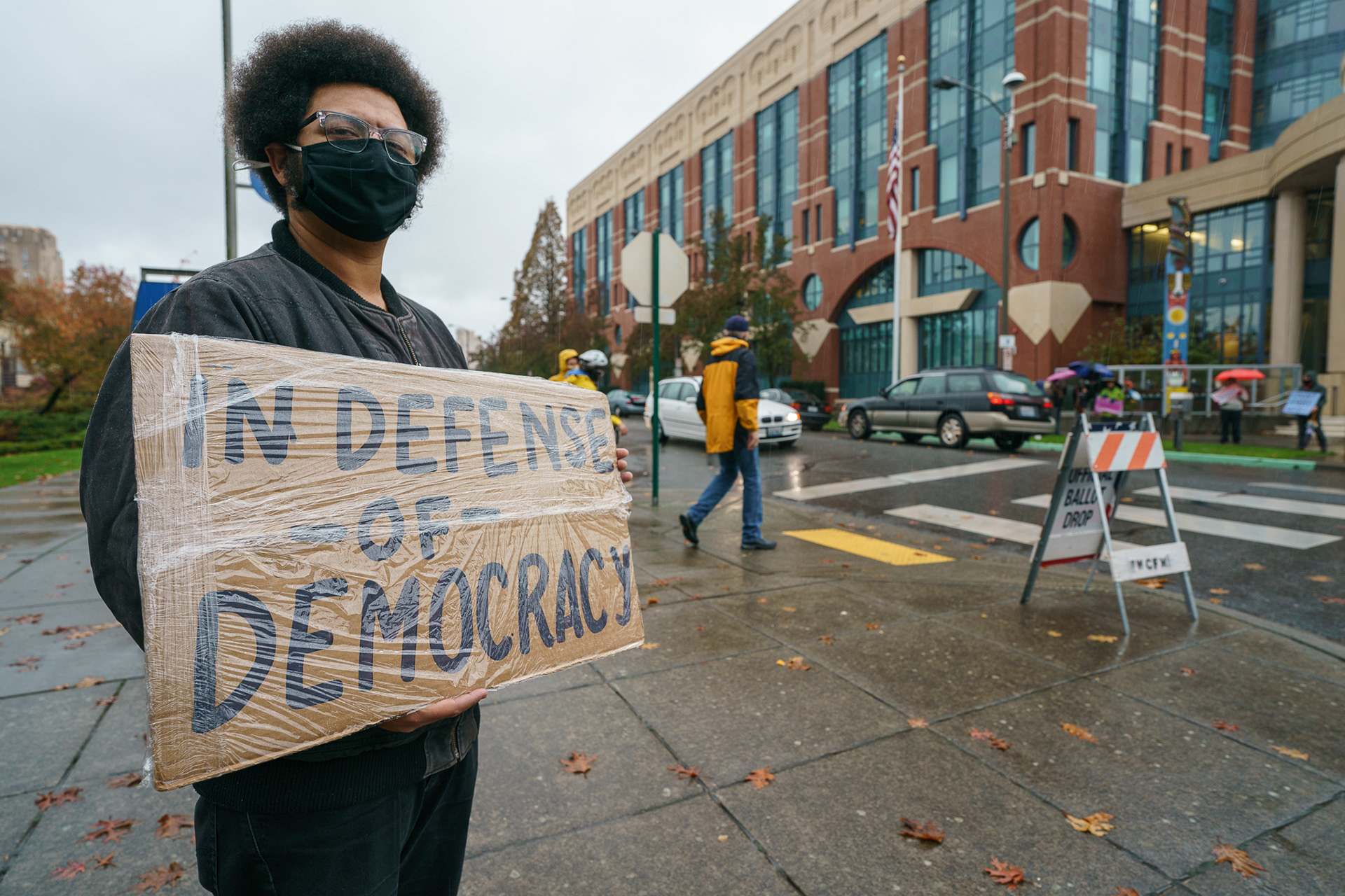 Lenny Walker of Bellingham, Wash., deposits his 2020 general election ballot in a dropbox near the Whatcom County Courthouse on October 21, 2020.